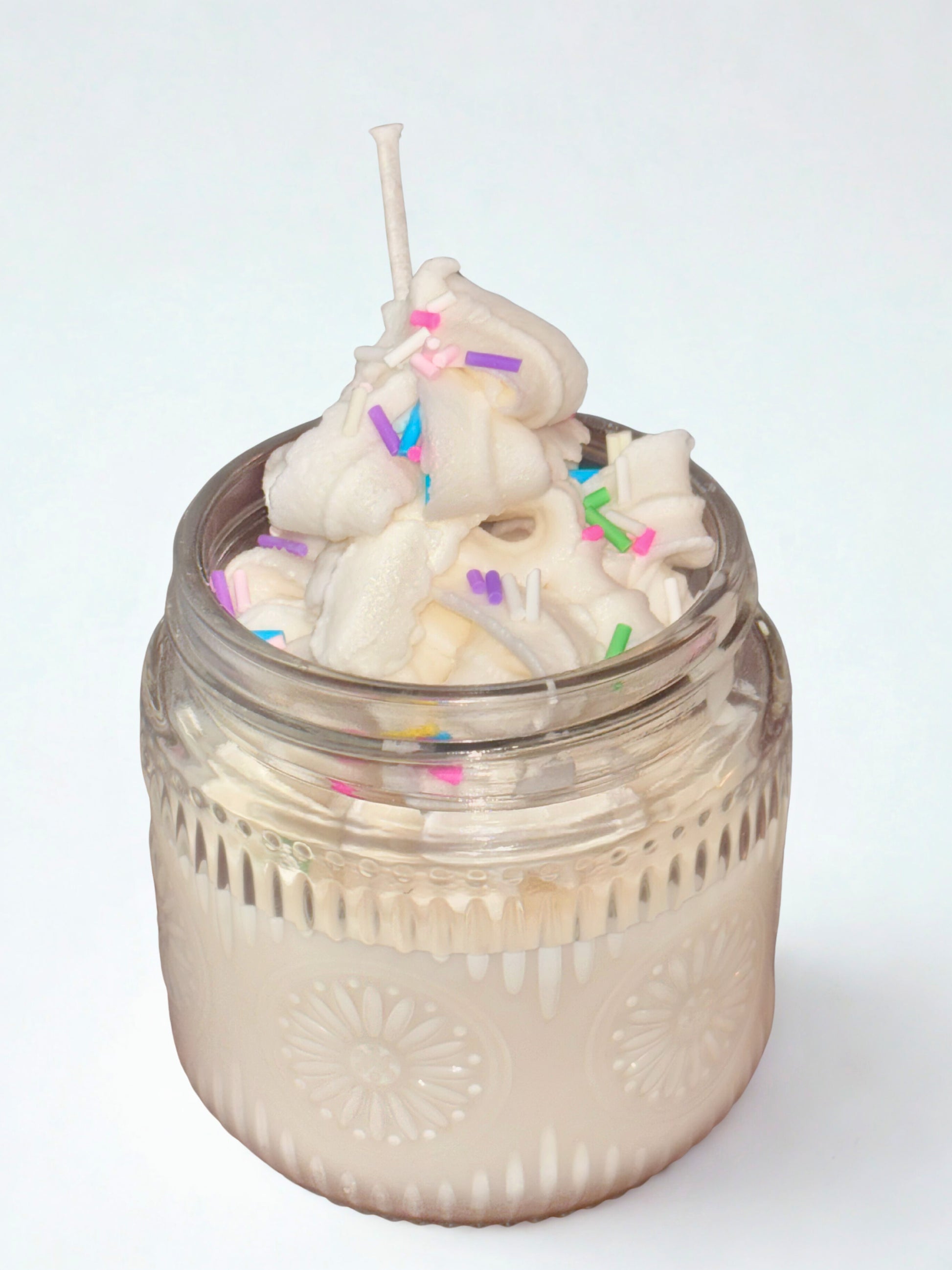 Birthday Cake Scented Coconut&Soy Wax Mason Jar Candles With Whipped Wax & Sprinkles