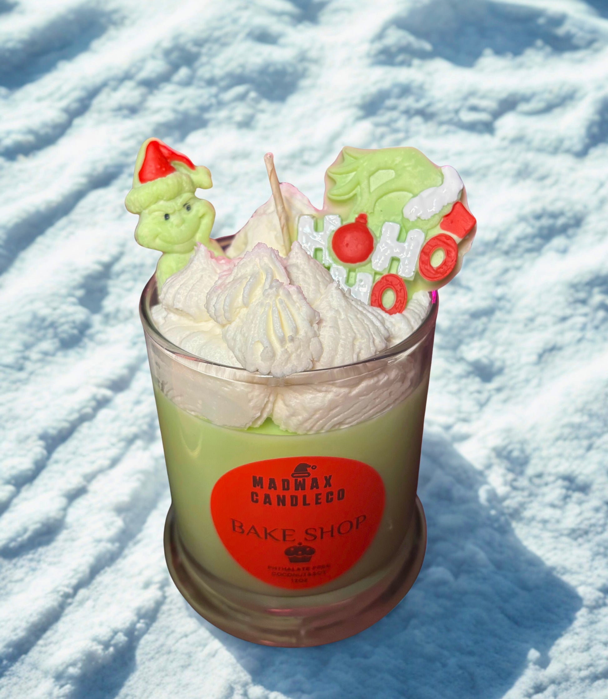 12oz Coconut&Soy Wax Candle. Whipped Wax and Grinch Theme Wax Shapes